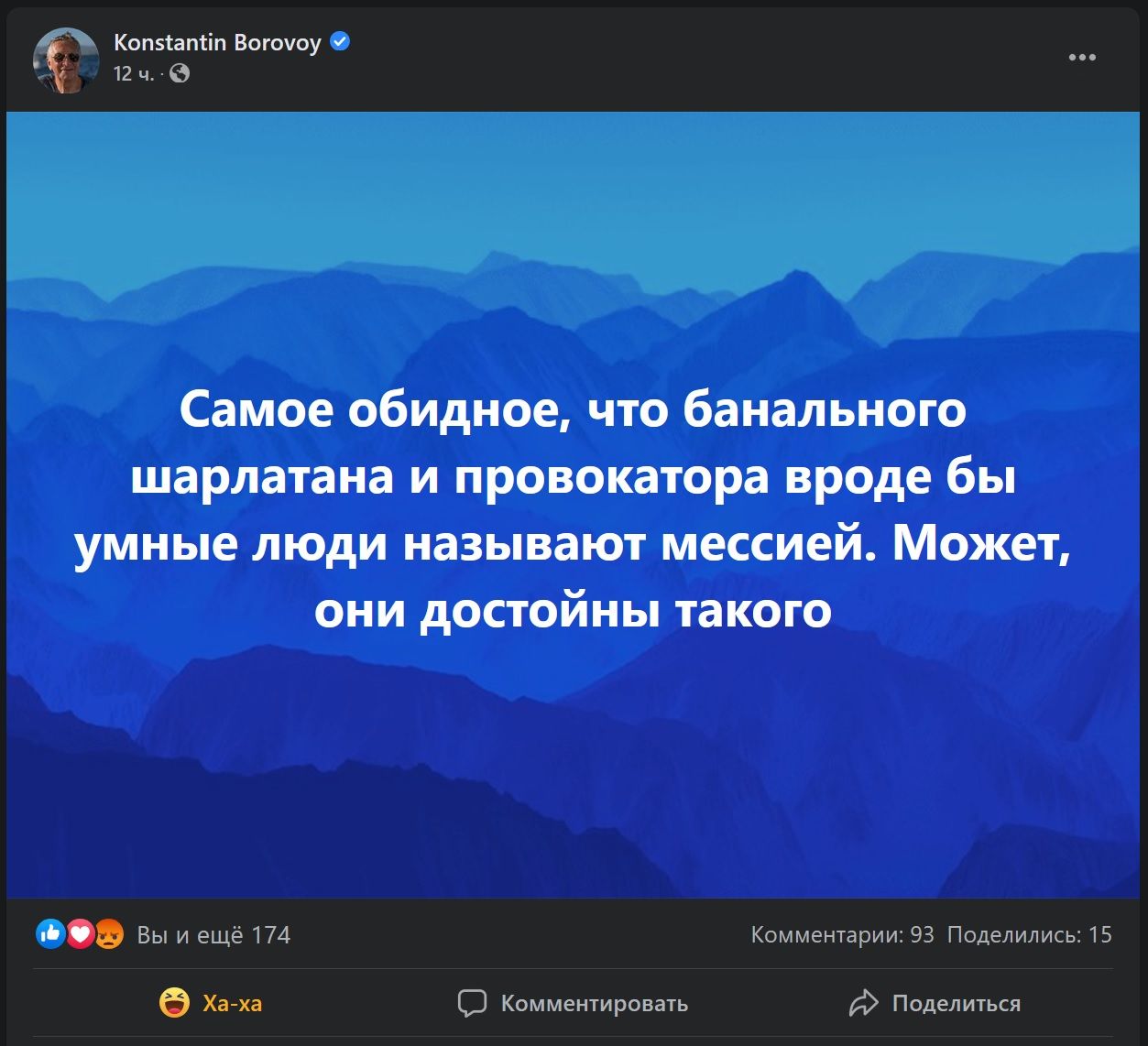 | Натаныч травит Сисяна и хомяков Posted: 18 Jan 2021 10:16 AM PST https://m.facebook.com/borovoi/posts/10215639661545099 ![]() Хомячки в комментах вопят "Натаныч, за щооо?!", и смешно лопаются. Написал выпиватник ripcord на trollitota.d3.ru / комментировать |