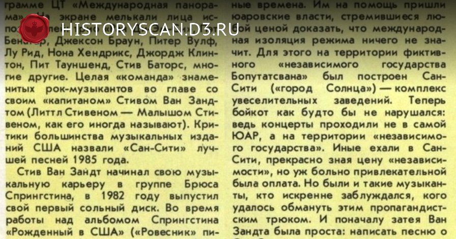 Статья о песне Sun City 1987 год СССР | | |