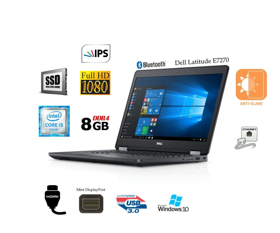 Параметры Dell Latitude E7270: = CPU INTEL Core i5 6300U 2.4Ghz (Turboboost 3.0 Ghz), Intel HD 520 = 12.5" МАТОВЫЙ, небликующий дисплей IPS 1920x1080 = наименование дисплея (из этой партии) BOEhydis NV125FH (Dell C7N7) 8–bit = RAM 8GB (DDR4) / SSD 128GB (формат M.2 2280) = Wi–Fi, Bluetooth, LAN (Ethernet) RJ–45 1GB/sec = 3 x USB 3.0, Cardreader = HDMI, mini Displayport = Audio port 3.5mm = Разъем для док–станции = ОС Win 10 Pro x64, с драйверами = Вес 1.26 кг., габариты 310.5x215.15x18.8 мм.